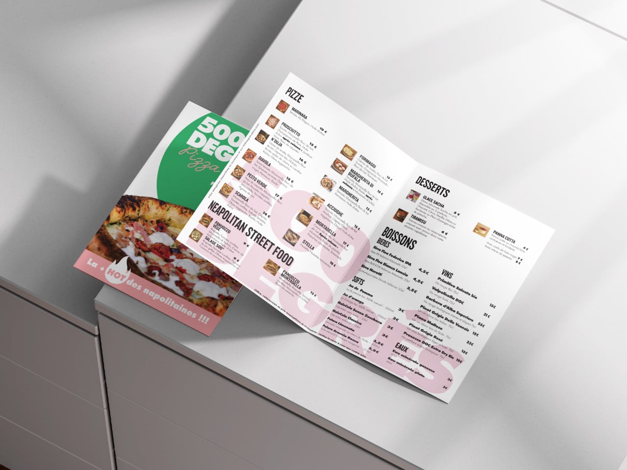 Mahymedia a eu le plaisir de collaborer avec la pizzeria 500 Degrés dans une prestation complète visant à renforcer sa présence en ligne et hors ligne. Notre mission s’est articulée autour de la refonte du site web, de la mise en place de la commande en ligne, ainsi que de la création de supports graphiques cohérents avec l’univers de la marque.